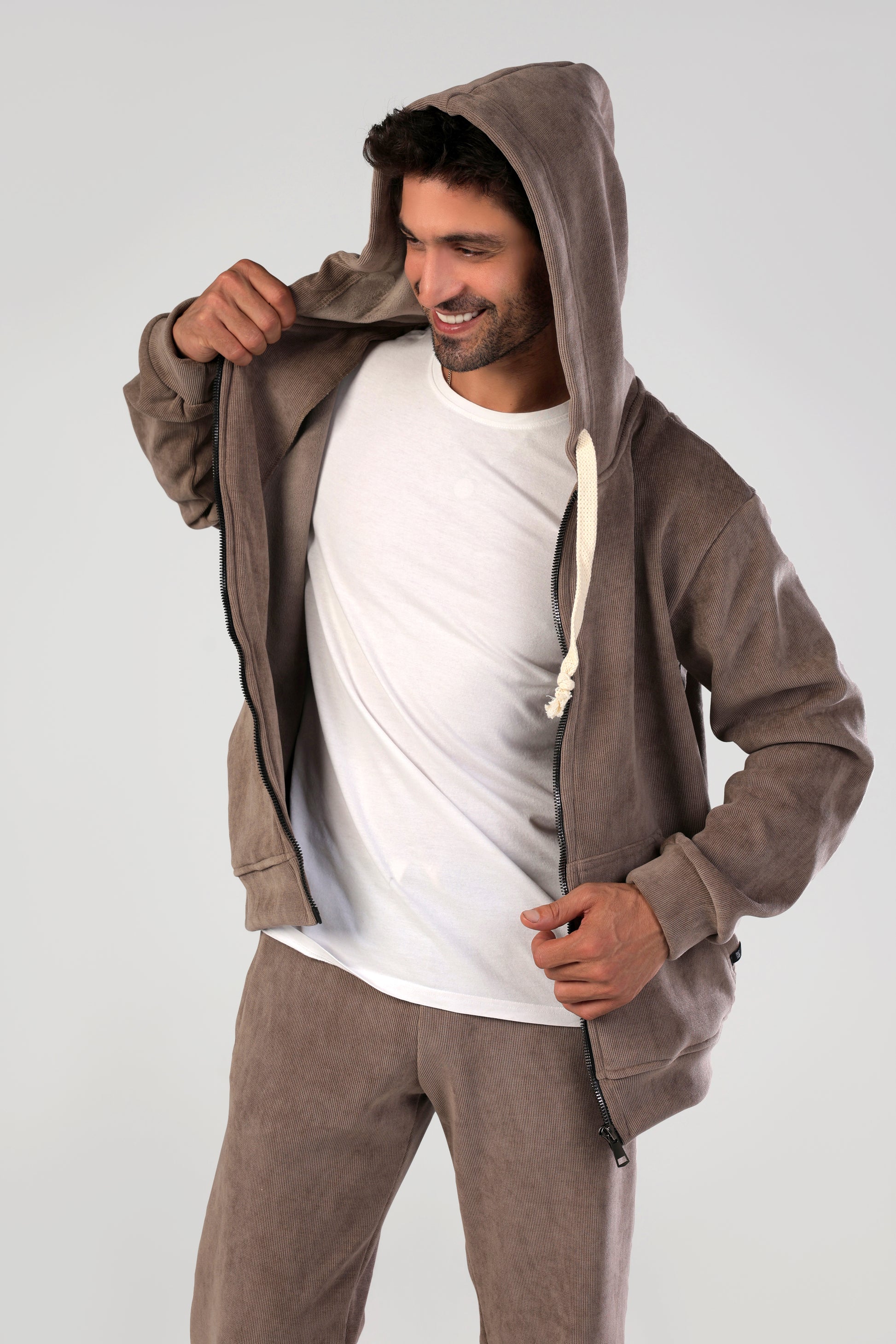 Ultra-soft, effortlessly relaxed, and seriously stylish—our Luxe Tracksuit Set is designed for ultimate comfort and cool, casual vibes. Crafted from a plush, fine-wale corduroy fabric and fully lined with warm fleece, this matching two-piece set offers a cozy, fuzzy feel that's perfect for all-day or relaxed lounging in cooler weather.