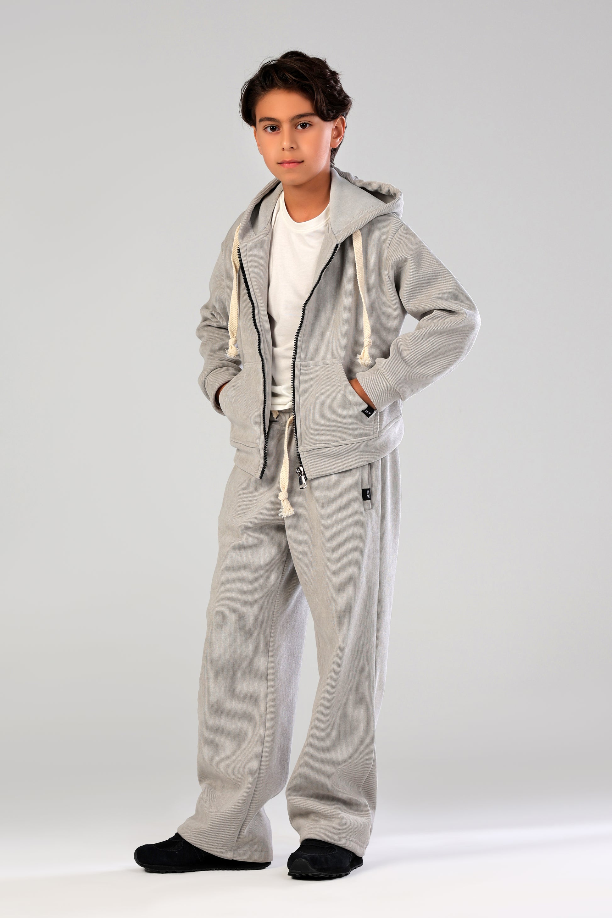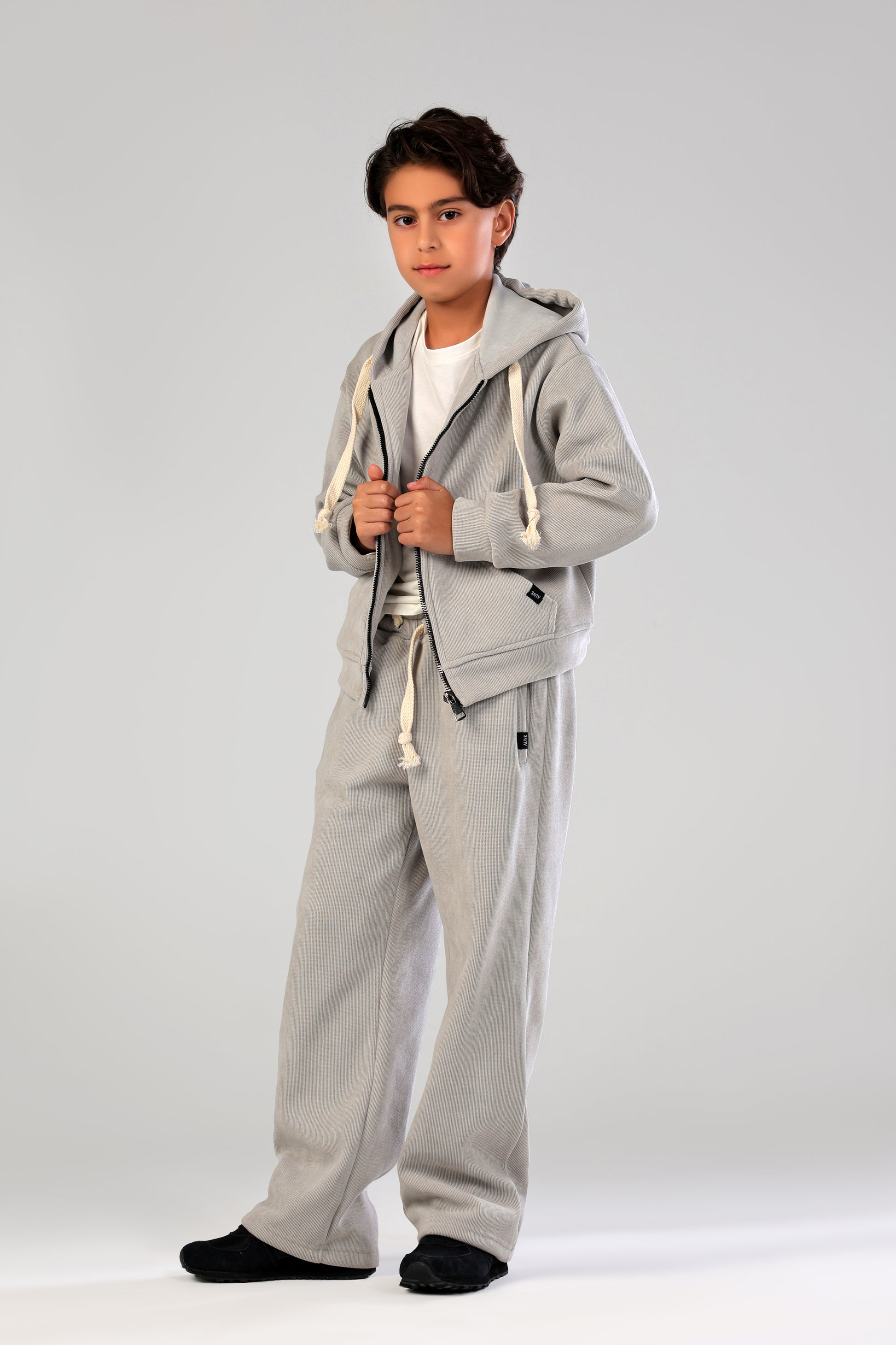 Ultra-soft, effortlessly relaxed, and seriously stylish—our Kids' Luxe Tracksuit Set is designed for ultimate comfort and cool, casual vibes. Crafted from a plush, fine-wale corduroy fabric and fully lined with warm fleece, this matching two-piece set offers a cozy, fuzzy feel that's perfect for all-day play or relaxed lounging in cooler weather.