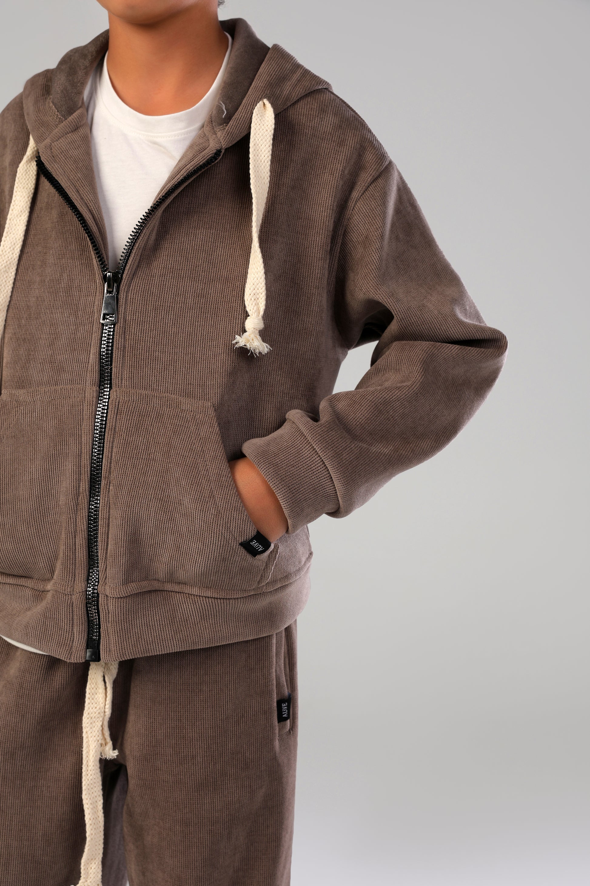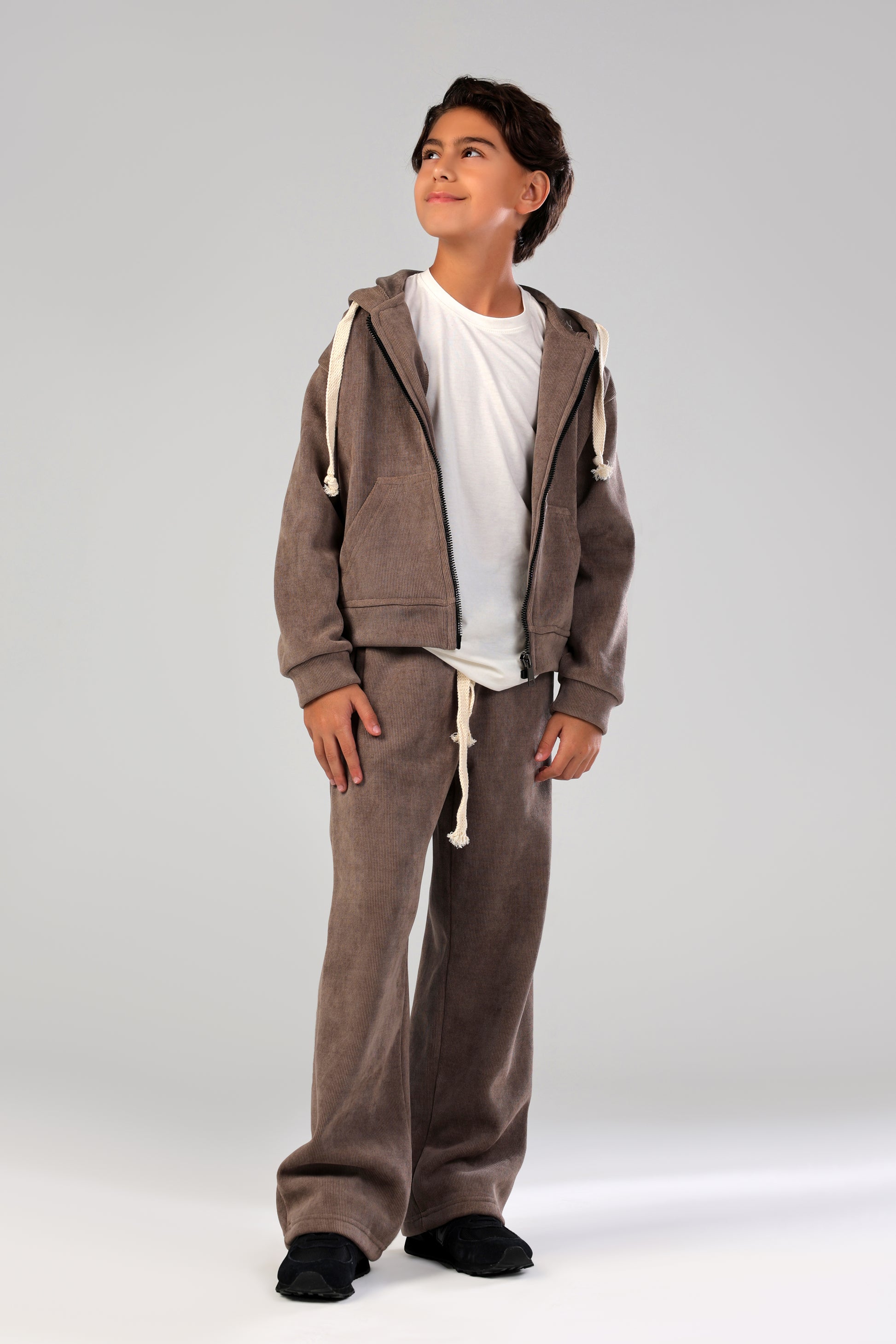 Ultra-soft, effortlessly relaxed, and seriously stylish—our Kids' Luxe Tracksuit Set is designed for ultimate comfort and cool, casual vibes. Crafted from a plush, fine-wale corduroy fabric and fully lined with warm fleece, this matching two-piece set offers a cozy, fuzzy feel that's perfect for all-day play or relaxed lounging in cooler weather.